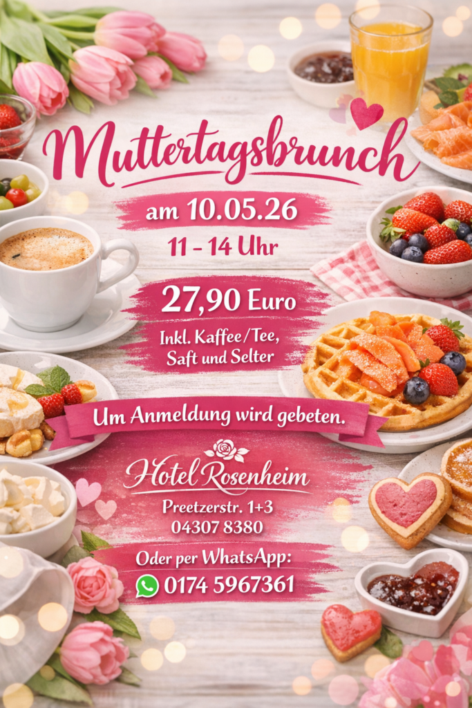 Für Anfragen/Planung einer Feierlichkeit melden Sie sich gerne, zu den entsprechenden Öffnungszeiten der Rezeption in der Zeit von 08.00-14.00 Uhr, telefonisch unter 04307/2049888 oder per Email: Restaurant@hotel-rosenheim.de